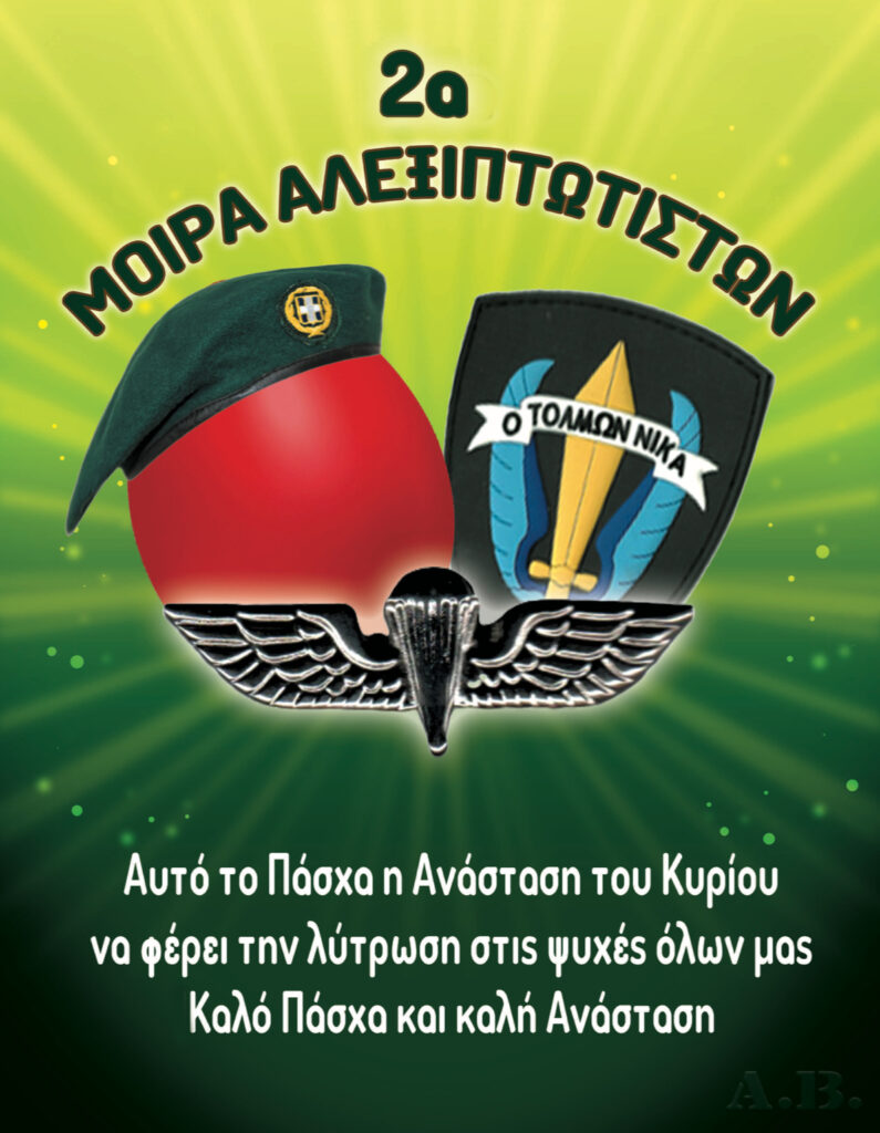 Καλό Πάσχα από την Διοίκηση της 2ας Μοίρας Αλεξιπτωτιστών. stratosadmin 29 Απριλίου, 2021 2α ΜΑΛ, Αλεξιπτωτιστές Αφήστε ένα σχόλιο 1,666 Προβολές Σχετικά Άρθρα Προαγωγή “Λάρυ” σε Ανθυπασπιστή 6 Φεβρουαρίου, 2022 Καταδρομείς Αλεξιπτωτιστές παντός καιρού. 25 Ιανουαρίου, 2022 Όταν “Πέταξαν” Οι Αετοί 12 Ιανουαρίου, 2022 Μοιραστείτε το Facebook Twitter Stumbleupon LinkedIn Pinterest